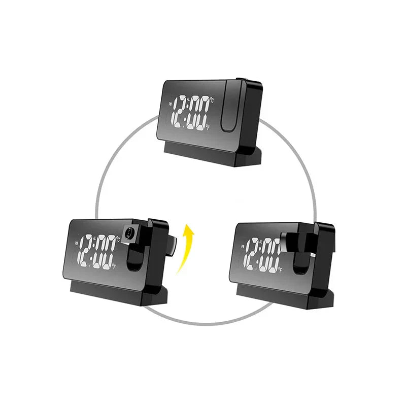 Dieser Projektionswecker wurde entworfen, um Ihren Alltag zu bereichern. Die beeindruckende, farbenfrohe LED-Anzeige zeigt Ihnen die Uhrzeit in leuchtenden Ziffern, die sofort ins Auge fallen und leicht ablesbar sind – Tag und Nacht. Doch das ist noch nicht alles: Mit der integrierten Projektionsfunktion wird die aktuelle Uhrzeit klar und deutlich in leuchtendem Rot an Ihre Decke oder Wand projiziert. Kein mühsames Suchen nach dem Smartphone mehr, wenn Sie nachts die Uhrzeit wissen möchten. Zusätzlich zeigt der Wecker auch die Raumtemperatur an, wahlweise in Celsius oder Fahrenheit, und hält Sie so stets über Ihr Raumklima auf dem Laufenden. Seine schlanke, minimalistische Form fügt sich nahtlos in jede moderne Einrichtung ein und macht ihn zu einem diskreten, aber unverzichtbaren Helfer.