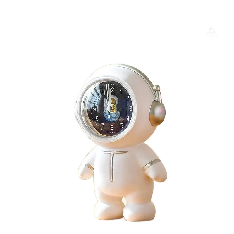 Dieser liebevoll gestaltete **Kinderwecker Astronaut analog für Jungen** besticht durch sein einzigartiges Aussehen. Die detailreiche Astronautenfigur mit dem Uhrwerk im Visier und den glänzenden Kopfhörern ist ein echter Hingucker. Die große, leicht ablesbare analoge Anzeige ist ideal, um Kindern das Verständnis für Stunden und Minuten zu vermitteln – eine wichtige Fähigkeit, die mit diesem Wecker zum Kinderspiel wird. Hergestellt aus robustem Material, hält er auch den wildesten Abenteuern im Kinderzimmer stand. Er ist mehr als nur ein Wecker; er ist ein kleiner Freund, der dein Kind jeden Morgen mit einem Lächeln in den Tag schickt und es dazu anregt, seine eigene Weltraumreise zu planen.