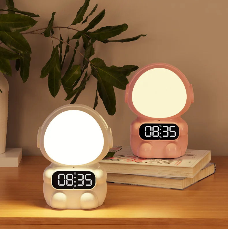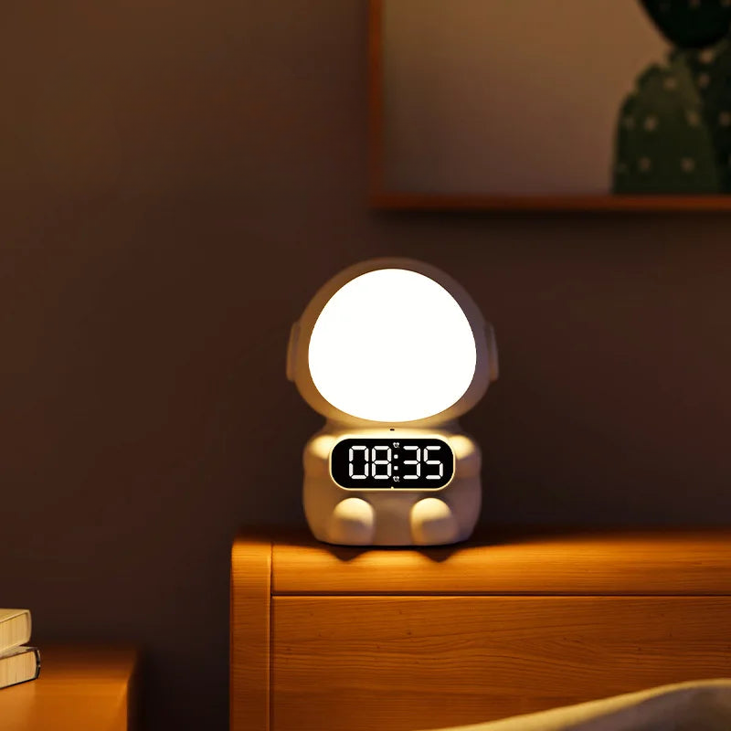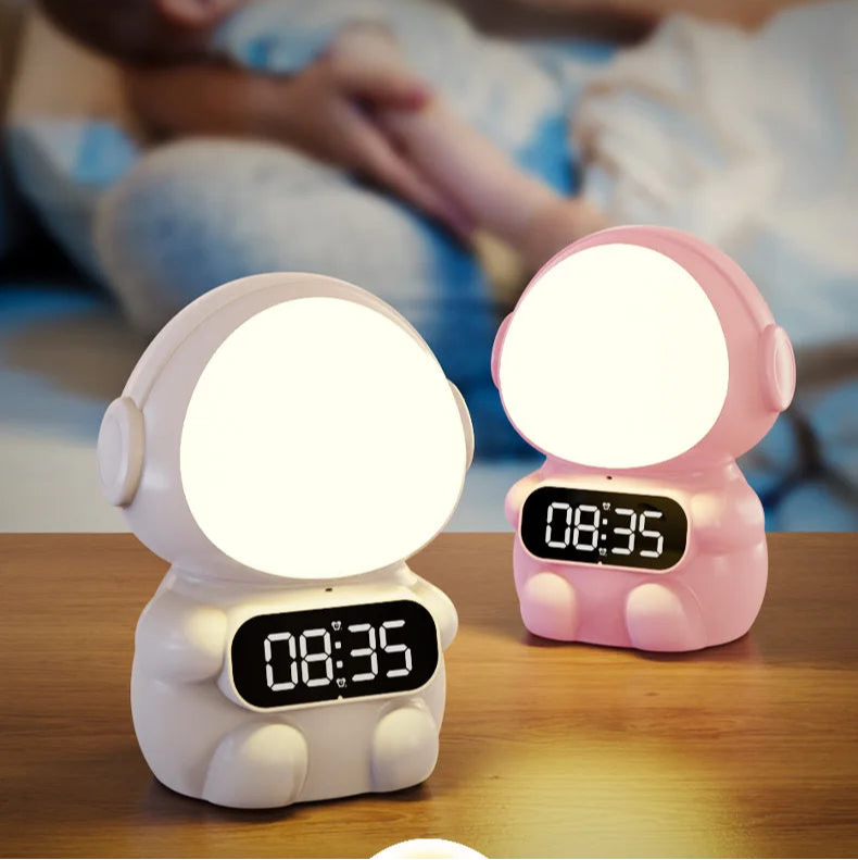 Entdecken Sie den zauberhaften Kinderwecker Astronaut mit integriertem Nachtlicht!