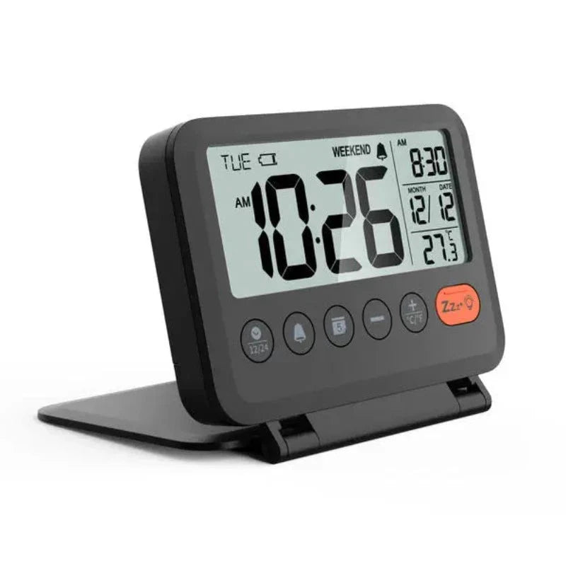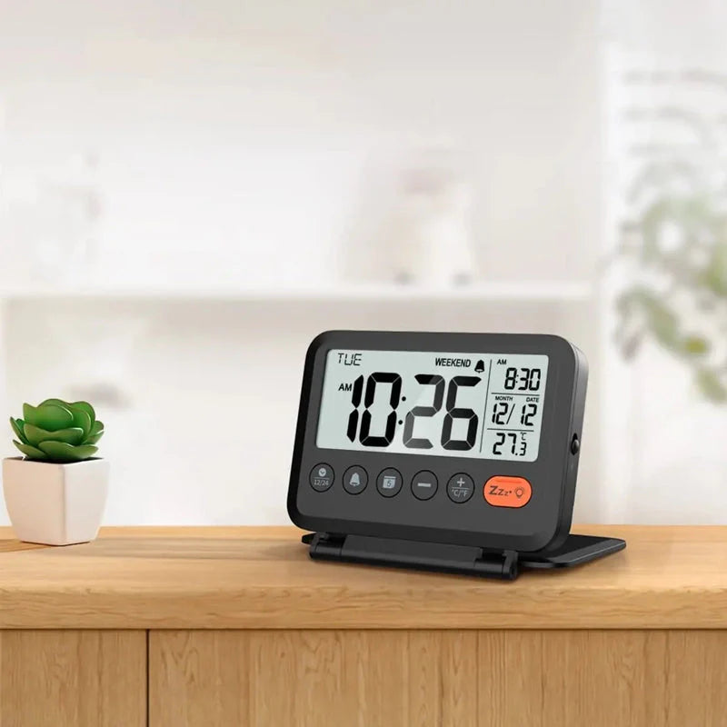 Maximale Funktionalität im Kleinen digitalen Reisewecker zum Aufklappen