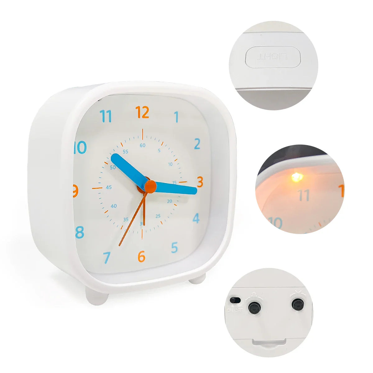 - Kinderfreundliches Design: Die abgerundete Form und die frischen Farben machen diesen modernen analogen Wecker für Schulkinder zu einem charmanten Hingucker in jedem Raum.
