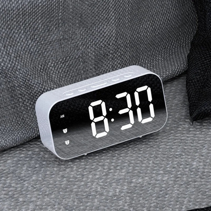 Moderner LED-Wecker mit großer Spiegelanzeige