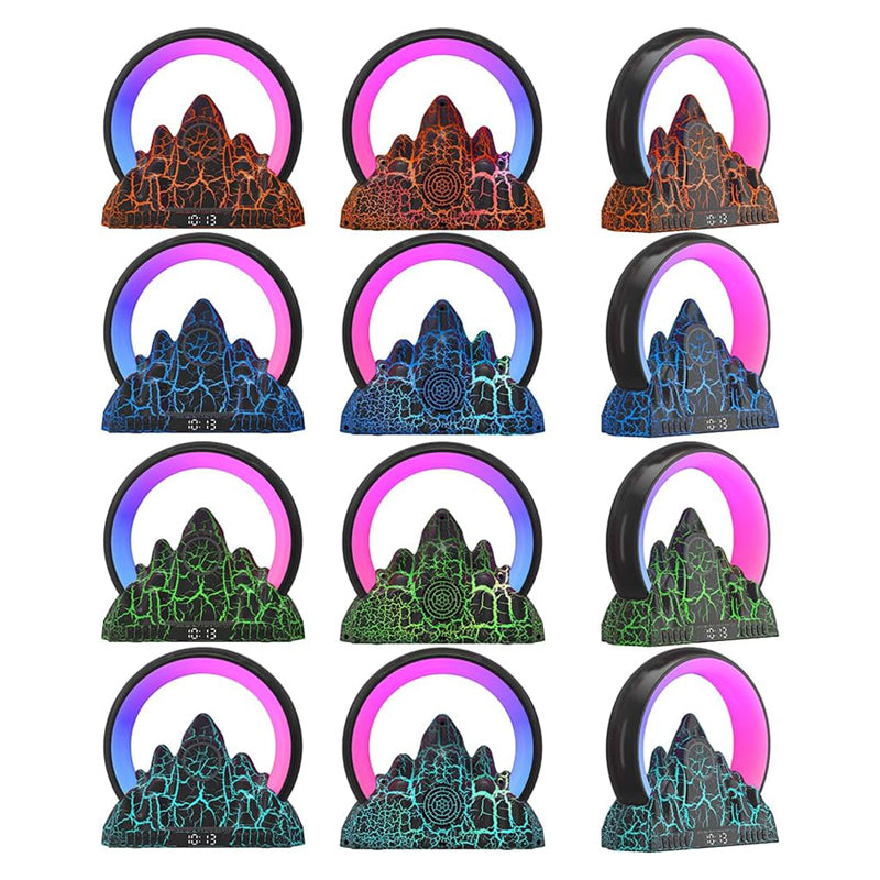 Stellen Sie sich vor, Ihr Kind gleitet sanft in den Schlaf, umgeben von einem beruhigenden Licht, das an einen Sonnenuntergang erinnert, oder es genießt ein farbenfrohes Ambiente beim Spielen. Dieser Lichtwecker bietet eine Vielzahl an Lichtfarben und Helligkeitsstufen, die perfekt an die Stimmung angepasst werden können. Die leuchtenden Ringlichter wechseln von kühlem Blau zu warmem Pink und fangen die Fantasie ein, während das detailreiche Bergdesign mit seinen pinkfarbenen "Lavarissen" für eine spannende Optik sorgt, die jedes Kinderzimmer aufwertet. Es ist nicht nur ein Nachtlicht, sondern auch ein Stimmungslicht, das die Fantasie anregt und eine gemütliche Umgebung schafft.