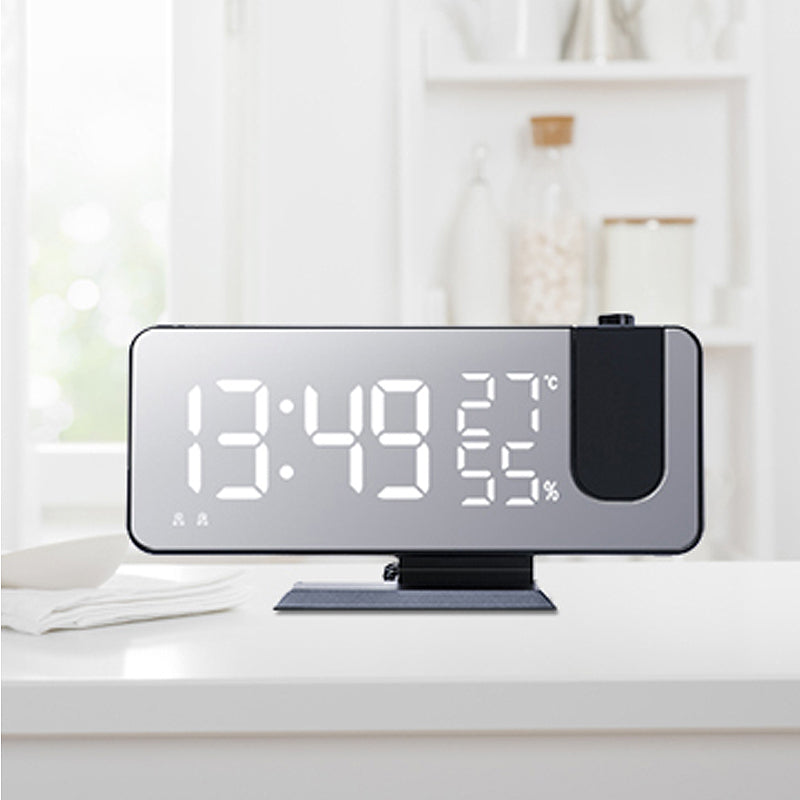 Stellen Sie sich vor, Sie wachen morgens auf und wissen sofort nicht nur, wie spät es ist, sondern auch, wie angenehm oder unangenehm das Raumklima ist. Unser eleganter Projektionswecker mit Temperatur und Luftfeuchtigkeit macht genau das möglich! Dieses vielseitige Gerät ist mehr als nur eine einfache Uhr. Es ist Ihr täglicher Begleiter, der Ihnen hilft, gut informiert in den Tag zu starten. Das schlanke Design mit spiegelndem Display fügt sich nahtlos in jede Schlafzimmer- oder Büroeinrichtung ein und wird schnell zum unverzichtbaren Highlight auf Ihrem Nachttisch oder Schreibtisch.