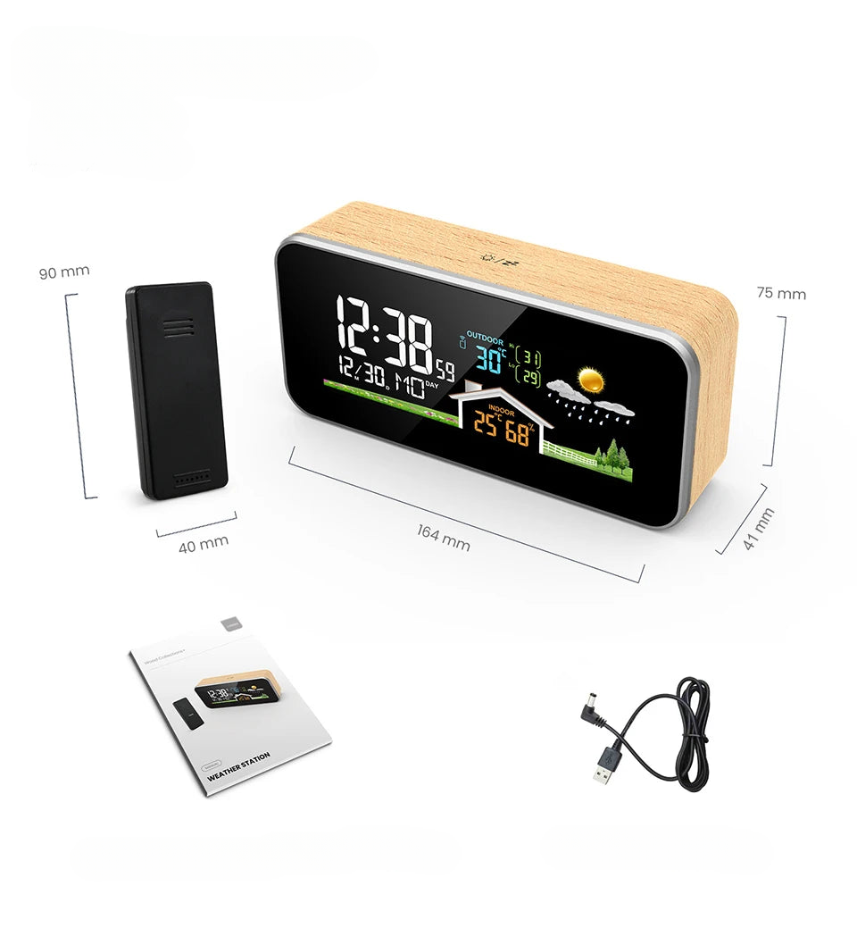Smarter Wecker mit Wetterstation Holzoptik