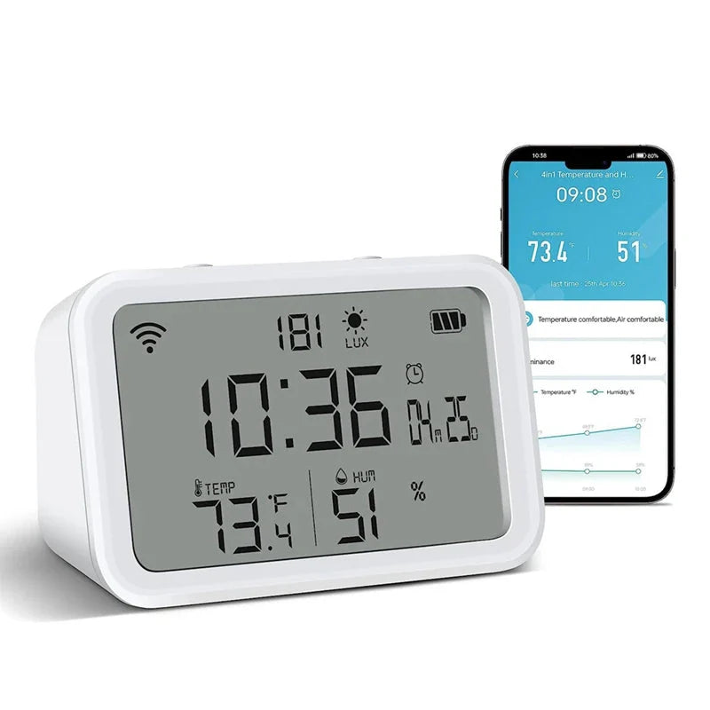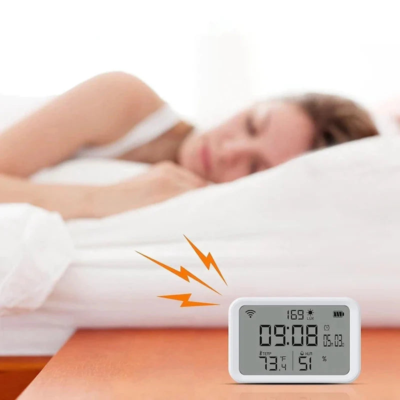 Stellen Sie sich vor, Ihr Morgen beginnt nicht nur pünktlich, sondern auch perfekt informiert und ganz nach Ihren Wünschen. Unser smarter WLAN Wecker für Google Assistant ist genau dafür konzipiert! Er integriert sich nahtlos in Ihr intelligentes Zuhause und bietet Ihnen weit mehr als nur eine zuverlässige Weckfunktion. Egal ob Sie ein Technik-Enthusiast sind oder einfach nur Ihren Alltag vereinfachen möchten, dieser Wecker wird zu Ihrem unverzichtbaren Begleiter, der Ihnen hilft, den Tag entspannt und gut vorbereitet zu starten. Entdecken Sie, wie einfach es ist, Temperatur, Luftfeuchtigkeit und sogar die Umgebungshelligkeit direkt im Blick zu haben und Ihr Smart Home optimal zu nutzen.
