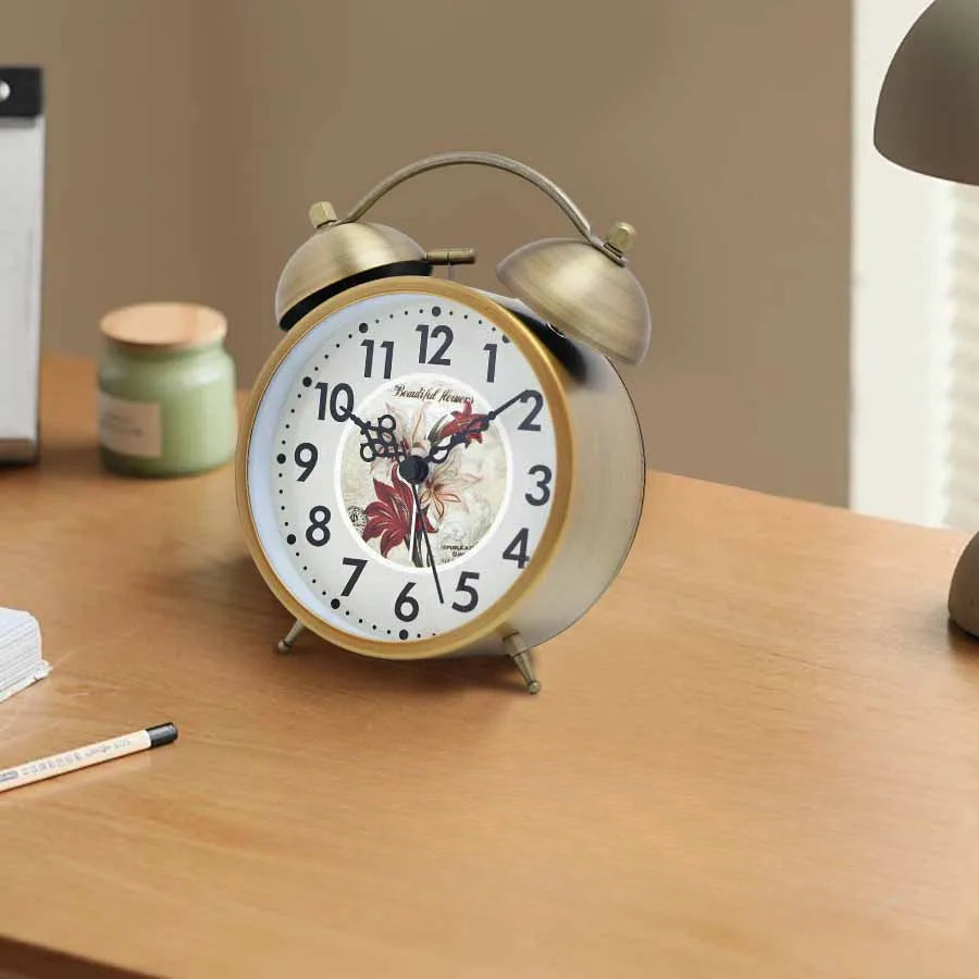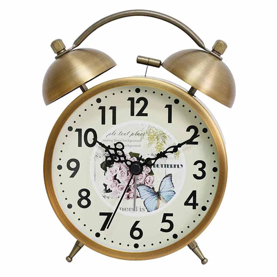 Jedes Element dieses Weckers wurde sorgfältig ausgewählt, um den authentischen Antik-Look zu unterstreichen. Das Gehäuse und die eleganten Doppelglocken glänzen in einem warmen Messing- oder Bronze-Ton, der an vergangene Zeiten erinnert. Doch das Highlight ist das liebevoll gestaltete Zifferblatt: Mit zarten Rosen und einem filigranen blauen Schmetterling wirkt es wie ein kleines Kunstwerk. Die klaren, großen Zahlen sorgen dafür, dass Sie die Uhrzeit immer gut ablesen können, und die kunstvollen Zeiger runden das Gesamtbild perfekt ab. Dieser Wecker erzählt seine eigene kleine Geschichte und ist bereit, Teil Ihrer zu werden.